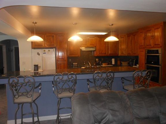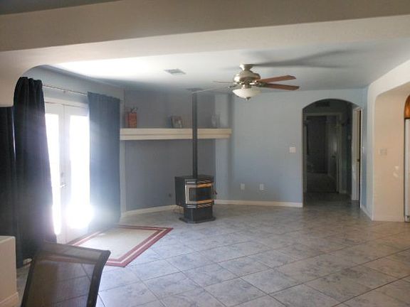 A Most Unique Offering. No expensive water bills here - have your own well. Sitting on 1.25 acres zoned for large animals and encompassed by a very impressive cinder block perimeter wall. Almost 1800 sq ft of living space, fresh paint and an awesome kitchen with granite counters and island. Gorgeous appliances - this is a kitchen that would be a joy to cook in. Two bedrooms plus an office with a closet - could be used as a third bedroom. The great room (living area) encompasses the dining room, kitchen and living area and is quite lovely. Pellet stove as well. French doors open onto a large patio. Chain link fenced back yard. 2 large storage sheds. Great setting - great views, great location. Just lovely.