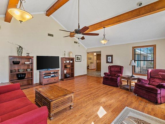 Must See!! Custom built 3/2 home sits on 1.87 acres. Features open floor plan, granite countertops, upgraded appliances and flooring, wood burning fireplace, master bath wheelchair accessible. Huge 1200' workshop w/covered slab & 3/4 bath. 3 Bedroom 1000 sq ft guest home equipped with refrigerator, stove, washer/dryer, and covered carport. Many extras & beautifully landscaped with trees/flowers. Move in ready!!