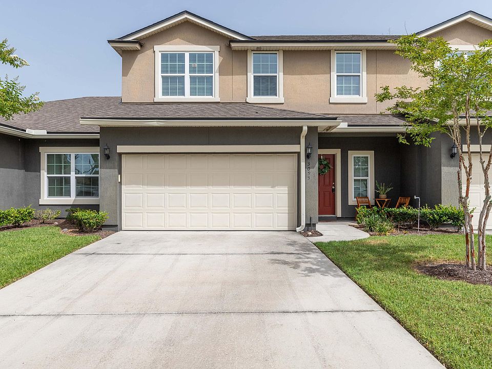 Like new townhome with brand NEW carpet and paint June 2020 and located in gated Chestnut Ridge at Oakleaf. Enjoy maintenance free living with all exterior and yard maintenance included, allowing more time to use the resort-style amenities of Oakleaf Plantation. This is the largest floor plan in the community with open living space downstairs with easy care tile and bedrooms upstairs with all new carpet. Oversized owner's suite including large walk-in closet. Screened lanai is perfect for relaxing after work, or drinking your morning coffee overlooking the open green field out back. The two car attached garage is convenient for keeping cars out of the heat and staying dry in a summer storm, PLUS extra guest parking nearby. All appliances stay INCLUDING the washer and dryer making
