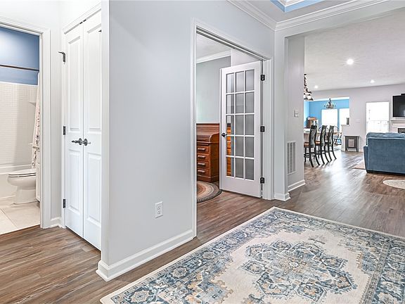 This stunning ranch-style home in Middlesex Crossing offers a perfect blend of spacious layout, luxurious amenities, and a private, nicely-landscaped yard. With 3-4 bedrooms and 4 full baths, it provides ample space for comfortable living. The wide-open floor plan makes entertaining a breeze, while the gourmet kitchen, with granite countertops, double ovens and abundant cabinet space, caters to all your culinary needs.The great room concept is perfect for everyday living with a gas fireplace as the focal point and the first-floor owner’s suite adds a touch of luxury and ease and offers a large soaking tub, glass shower and large walk in closet. The finished lower-level game room, complete with an adjacent bedroom and en-suite full bath, adds versatility and convenience. The private rear yard, adorned with mature trees and professional landscaping, ensures extra privacy. Enjoy outdoor living on the extra-large patio, featuring a stone wall and seasonal awning. Walk to local businesses!
