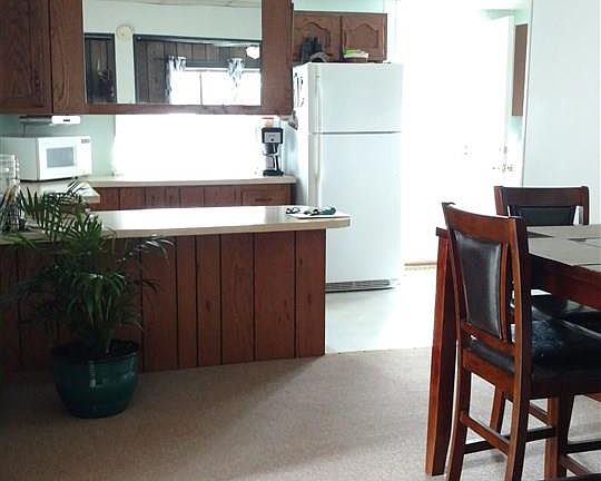 Move into this clean 2 bedroom home with open kitchen/dining/living room area. Has patio doors out back to a deck that sits on 1 acres of land. Garage for storage + shed. Make your personal showing today