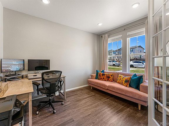 Welcome to Low Meadow, a haven of modern living nestled within The Meadows community. This paired home offers an ideal blend of convenience and comfort, perfect for those seeking lower home maintenance. Enjoy access to amenities such as two community pools, parks, walking trails, and the single track in The Ridgeline open space, all within reach of neighborhood hotspots like Crush, Whiskey Lodge, and Nothing Bundt Cakes. Picture yourself leisurely strolling to nearby restaurants and shops, embracing the ease of neighborhood living. Step inside to discover an inviting open concept layout with a neutral color palette, highlighted by features like 8-foot doors and a spacious kitchen adorned with quartz countertops and a large island. Access your private outdoor side yard from the main living space, while the charming front porch beckons for moments of relaxation. Don’t overlook the main floor office with French doors, offering versatility as a potential non-conforming 3rd bedroom. Upstairs, a versatile loft area awaits, providing the option for a third bedroom conversion. The large primary bedroom boasts a generous walk-in closet and a spacious bathroom with ample storage, complemented by a secondary bedroom and bath upstairs. With an unfinished basement offering potential for additional living space, this home adapts to your evolving needs. Situated on a quiet, centralized street, it seamlessly blends luxury and functionality for the ultimate lifestyle experience. Don't miss the attached garage with tall ceilings, accessible through the alley entry. Come and discover the allure of this home.