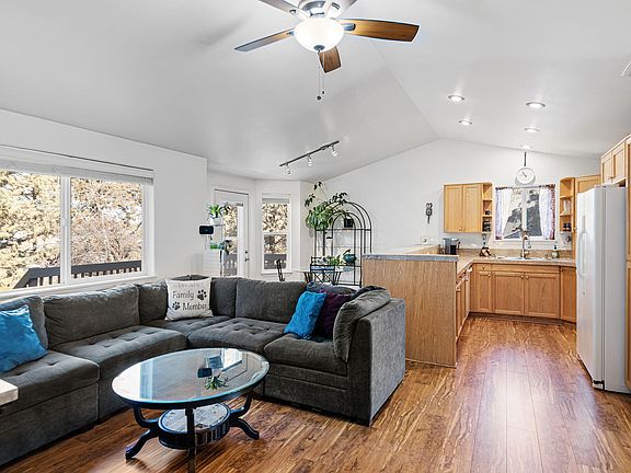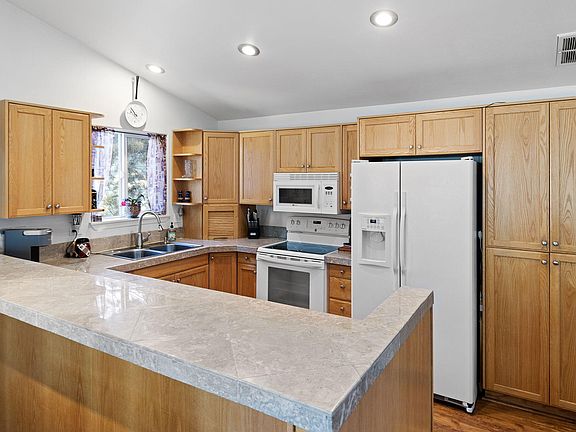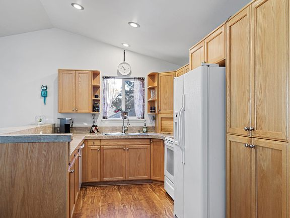 Located on a quiet street, near schools, hospitals, and eateries, this well-cared-for single-level home enjoys an open great room, natural light, vaulted ceilings & dining area w/access to a west-facing newer deck. Spacious kitchen w/ granite counters, breakfast bar, storage w/pull-out shelves, all appliances included. Primary suite enjoys separation from bedrooms 2 & 3, an en-suite bath& french doors leading to a covered deck pre-wired & reinforced for a hot tub. Park-like private fenced yard, room to garden, 2 car garage with small area for RV parking, heat pump. Pride of ownership is evident in all areas of this property as well as the street!