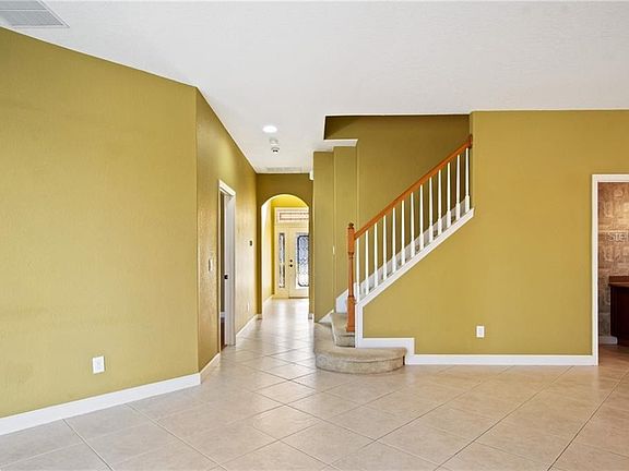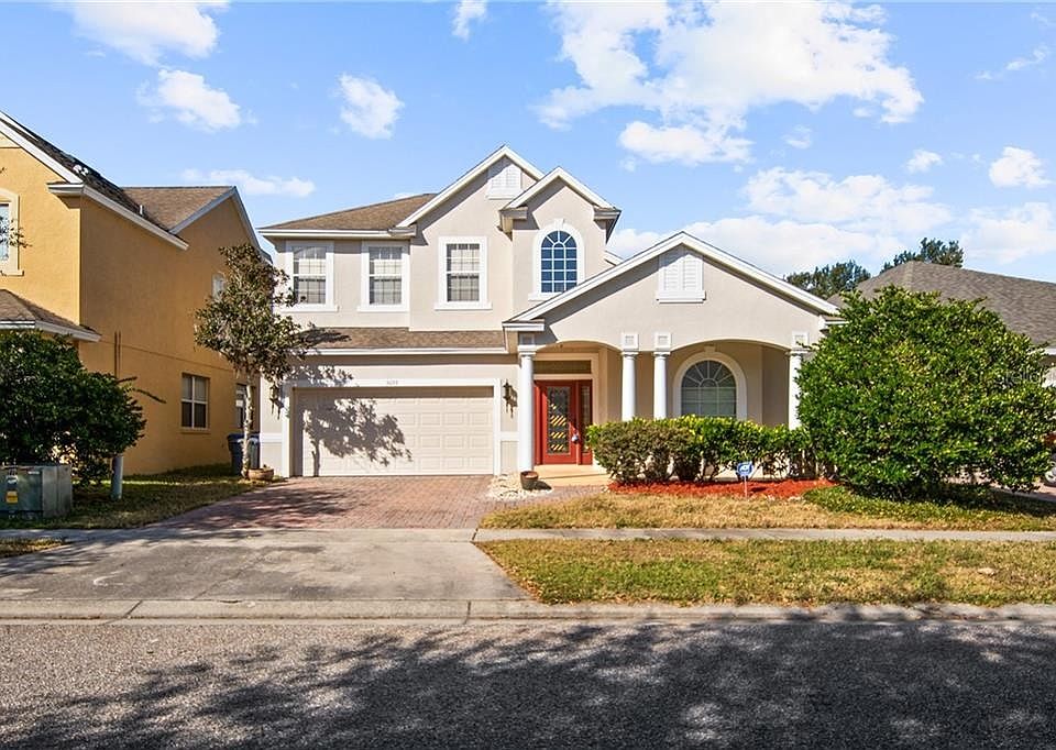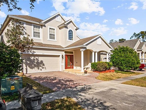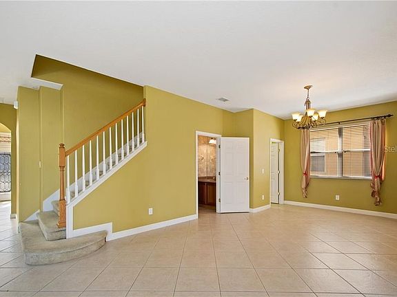 This former model is a four bedroom, three and a half bath pool home back to the Legacy Park pond for a relaxing view. The twostory home features a Master bedroom downstairs, breakfast nook, family room, formal dining room, formal living room, and a loft.The master features a tray ceiling, hard wood floor, his and her walk in closets, a jetted marble tub, and dual vanities. The kitchenfeatures ceramic tile floor, 42' cabinets, under cabinet lighting with crow molding, a tumbled marble back splash a breakfast bar,corian counters, closet pantry and breakfast nook which overlooks the family room. Ceramic tile flooring downstairs and carpet inall upstairs rooms . This home is located just minutes to the turnpike entrance for easy access to all major Central Florida roads foreasy travel anywhere in the state and it is close to bus line, shopping, and restaurants. Last but certainly not least the house is in acul de sac, so there will be no through traffic. Come on over today before you miss it!