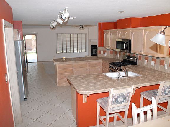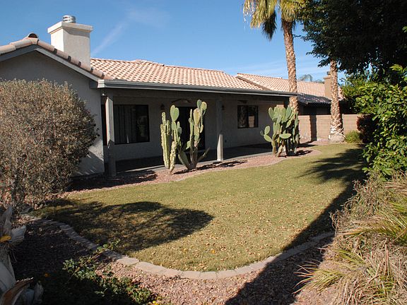 Here is a beautiful 3 bedroom 2 bath home in desirable Barkley Ranch subdivision. It is right next to elementary and middle school and 8 minutes to Yuma Regional Medical Center (YRMC). Barkley Ranch is an established neighborhood on the west side of town with quiet and well landscaped streets. It is a split and open floor plan. The kitchen is large with stainless appliances, tile counter tops and flush sink. Rooms are good size with large master suite, walk in closet, and garden tub. Additional interior features include water softener, alarm system, Reverse Osmosis drinking system, washer & dryer, dining table with 4 chairs, gas fireplace, full cabinetry in laundry room, updated door hardware (interior and exterior), all faucets replaced, large pantry closet, Levalor blinds on all windows, ceiling fans in all 3 bedrooms, patio and great room, Central Vacuum with garage outlet. Brand new Air Conditioning unit.Exterior features- well landscaped yard with timed drip irrigation, over-sized double garage with 2 ft extension, side garage door entrance, enlarged and tiled exterior rear patio space. Nicely landscaped front and back yard with timed drip irrigation. Not many like this popular floor plan available in Barkley Ranch.