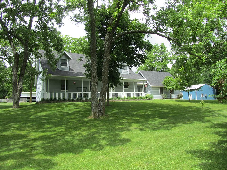 Large Cape Cod home on a gorgeous wooded 10.92 acres. Hardwood, Laminate and tile flooring throughout main floor, carpeted bedrooms and basement, built-in cabinets in the Living Room and Dining room. Additional Master suite or mother in law quarters in basement. Large Master Bedroom Suite upstairs with office space, spacious private bathroom and two walk-in closets. Amazing Kitchen with cathedral ceiling and lots of cabinet space. Nice deck with retractable awning and a covered front porch for outdoor evenings! Fabulous insulated 70x36 /shop with heated & cooled Office, security system, skylights and four 10x10 doors and an additional 3 sided metal barn with 2 tack rooms.
