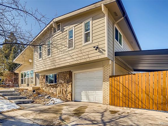 A remarkable remodel with designer touches and beautiful architecture! Through your french door entry you're greeted with vaulted ceilings and an open floor plan with lots of windows for great lighting. All kitchen appliances are included, even the mounted TV! Custom tile finishes throughout. The upper level has 2 bedrooms that share a full bathroom and the Primary bedroom has it's own bathroom and private balcony. On the lower level you have another family room, laundry room, half bath, storage, and an additional walk-out to the backyard. In the basement there are two additional bedrooms, both with egress windows, a 3/4 bath and more storage! Retreat to your backyard oasis which includes a large patio with custom finished table that stays! The outdoor kitchen and grill also stay! Plenty of grass to enjoy as the temps warm up, and don't miss the extended driveway along the side of the home! The gate for the carport opens via remote. You can open just one side or the whole door for a multitude of parking options and storage space. Wonderful central location near I25/I225, schools, parks, the Cherry Creek trail, Cherry Creek Reservoir, and Hampden Heights pool and tennis club. Welcome home!