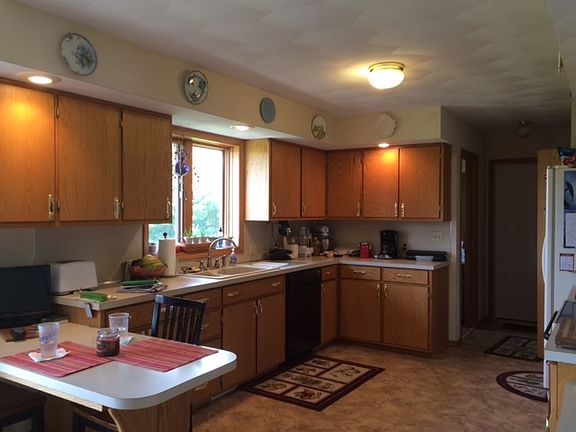 Agent Owned. Lots of Storage. Cloths chute to lower laundry room, pantry and all oak cabinets in kitchen and oak woodwork through out the house. Landscaping finished with garden, fruit trees, grape arbor. Garage has openers, two entrances from street and the 3rd from the south side, street doors new 2015. Privately made oak bookcases and entertainment center are negotiable. Well had new pressure tank in 2015, well pump in 2013.New roof and water heater in 2016. Private patio in back with a front porch to watch setting sun. Family room has corner gas fireplace.