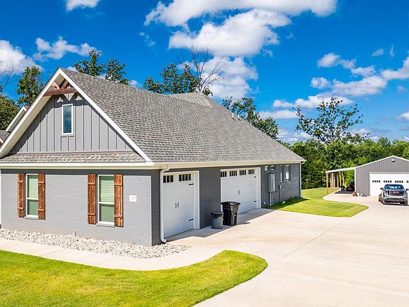 This newer home sits on over an acre at the end of a quiet cul-de-sac. It offers 4 bedrooms with split floor plan, including an office for added convenience. There's ample storage space throughout, each room complete with walk in closets. The home features granite countertops throughout, complemented by a large walk-in pantry in the kitchen. and a gas stove for cooking enthusiasts. Enjoy beautiful evenings cozied up on the large, covered patio finished with a stone accented outdoor fireplace and stunning stain grade ceilings. Very private space with frequent deer sightings. Other amenities include a stairwell leading to a floored attic for easy access storage. Fully equipped with irrigation system on all sodded landscape. In addition, a spacious 30x50 shop awaits, complete with a 200 amp electrical panel and a 12x50 lean-to for extra covered space. Plumbed and ready for an added bathroom. Imagine the possibilities here! Overall, this property offers a blend of modern comfort and practicality, perfect for those seeking space and functionality in a peaceful residential setting. Just far enough in the county but still close enough to it all. Bryant Schools, NO HOA...