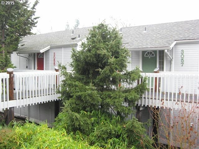 Excellent duplex in desirable location with filtered views, close to Waldorf School. Updated kitchens, heat pumps, f/s gas stoves in living areas, inside laundry rooms, two decks, private garages. Extremely well-maintained: new interior & ext paint in 2013, newer carpets in #3057, recent repairs to roof and decking, #3055 heat pump new in 2014. #3055 has gas range, tile counters, laminate kitchen flr, crown moldings. Occupy one, rent one!
