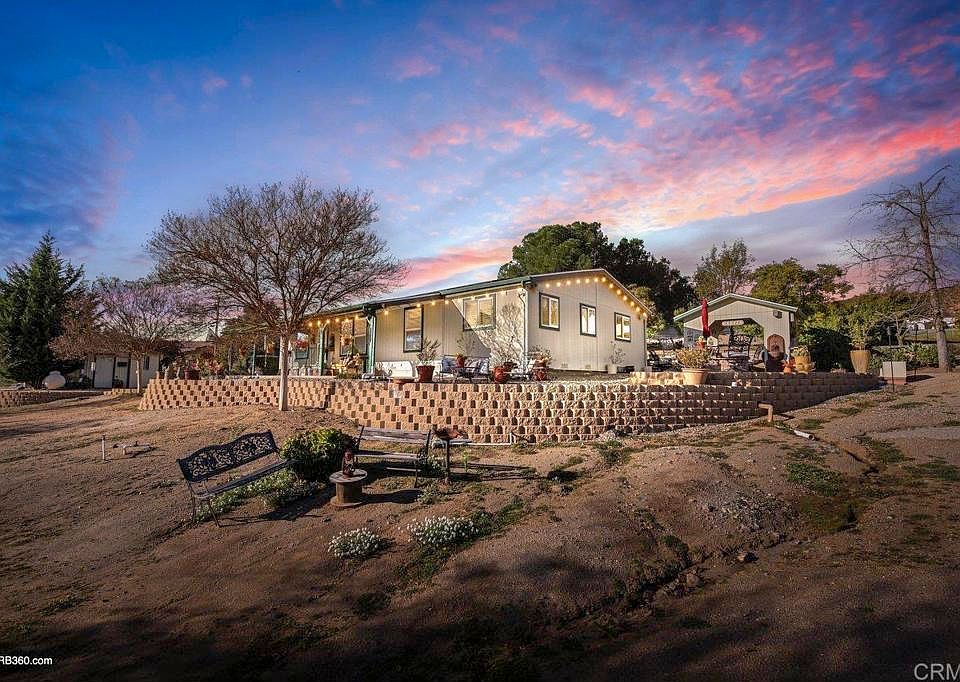 Welcome to 30557 Rock Stone Rd, a charming residence with owned solar nestled in the serene community of Valley Center. This 3 bedroom, 2 bathroom home sits on a 4.48 acre lot - all of which is flat and usable. An updated kitchen includes granite countertops and stainless steel appliances. An owned solar system ensures energy efficiency and covers the entire electric bill. The roof was replaced in 2021 at the same time the solar was installed. Hobbyists or professionals alike will appreciate the fully insulated working cabinet shop (30' x 50') complete with a separate storage room (10' x 24'), bathroom and 100 amp 3-phase power. The property also includes a large RV barn (26’ x 36’ x 14’) equipped with full hookups. There is an additional detached one-car garage that provides additional storage. Outside on the expansive 4.48 acre lot, you'll find plenty of amenities that enhance this property's appeal. Over 20 mature fruit and ornamental trees including oranges, limes, lemons, fig , guava, peach, and apricot. 2 large, fenced-in areas are perfect for animals or livestock. Garden enthusiasts will be delighted by the rose garden and mature landscaping. The usable acreage allows for endless possibilities to customize your surroundings according to your lifestyle needs. Come discover what makes this property truly special! **This is a manufactured home on a permanent foundation with a 433A recorded - this means conventional financing is not a problem on this home**