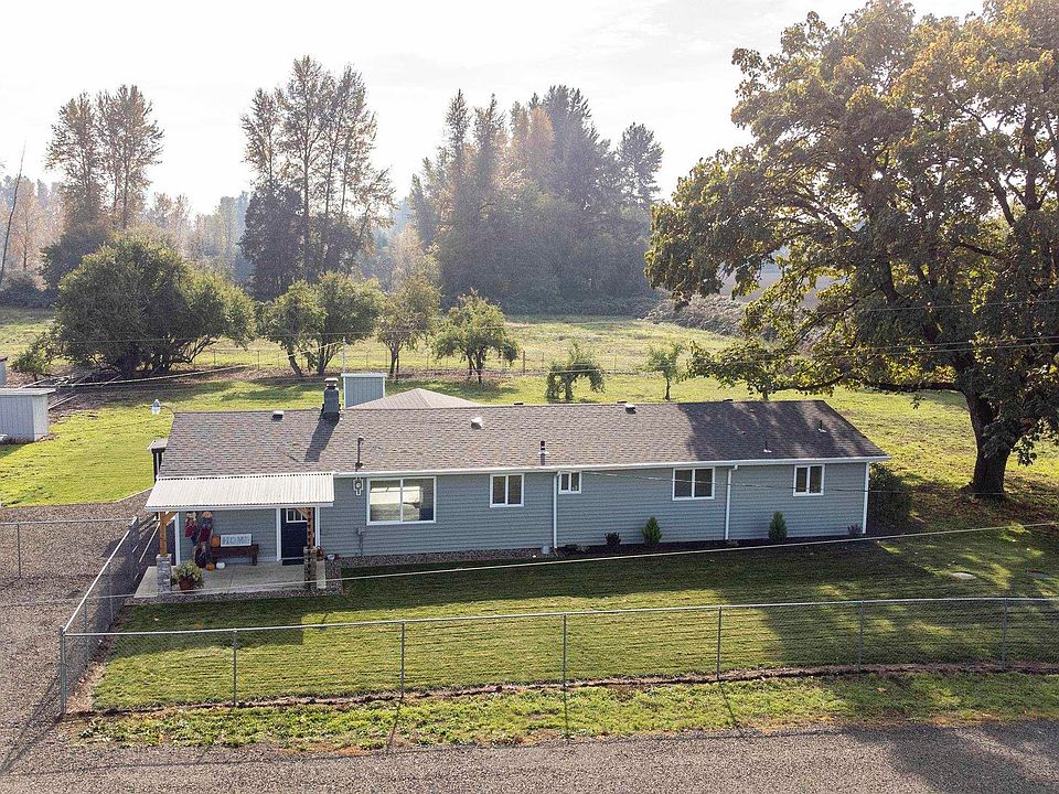 New price! Back on market due to no fault of the home. Perfect for a hobby farm. Updated & move in ready stick-built home. Enjoy quiet living in the desirable River Road countryside. New: kitchen cabinets & appliances, updated bathrooms, new laminate floors, interior paint, newly created mudroom/laundry w/separate outside entrance, roof, well motor, lawn, septic & drain field. Lg covered patio w/ entrance from living room & primary bedroom, 10 mostly fenced acres, barn, 24 x 30 shop/garage, fruit trees.