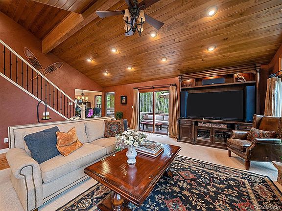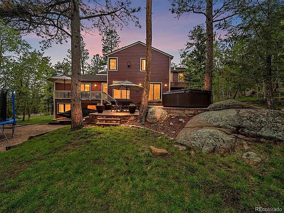 WOW what an amazing property! This wonderful home is nestled in the aspens of Kings Valley only a minute from 285 and 5 minutes from shopping in Conifer. With an aspen grove and a pond just steps from the back door, this property offers a perfect park-like setting. Inside, you will find that nearly every surface of the home has been updated by the current owners, including hand textured walls and European Alder tongue and groove ceilings. The main level has an open floor plan that flows from kitchen to dining room to living area and to the open loft above. Upstairs you will find the primary suite, complete with a gas fireplace has been fully updated as well, with three more bedrooms, one of which makes a great office, workout, or bonus space. The fifth bedroom is on the lower level and could easily be used as an in-law or nanny suite with its own entrance. But it is the outdoor space surrounding this home which makes it truly special. From the flat driveway to the seasonal spring, stream, and pond, including over 500 square feet of hardscaped outdoor living space, you simply don’t find back yards like this in the foothills. The current owners have taken great care to create truly incredible spaces, both inside and out. Come see it for yourself, we are sure you'll agree that this is a must-see!