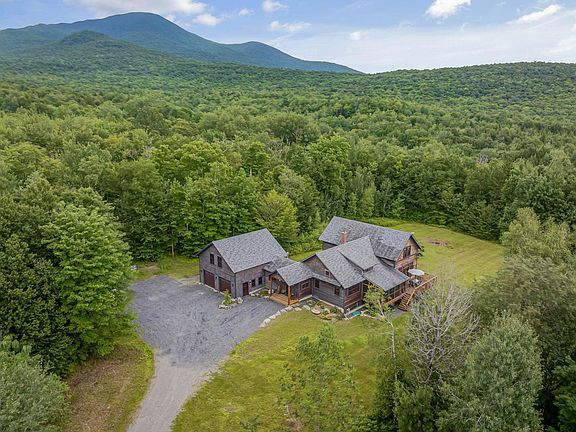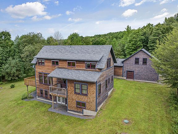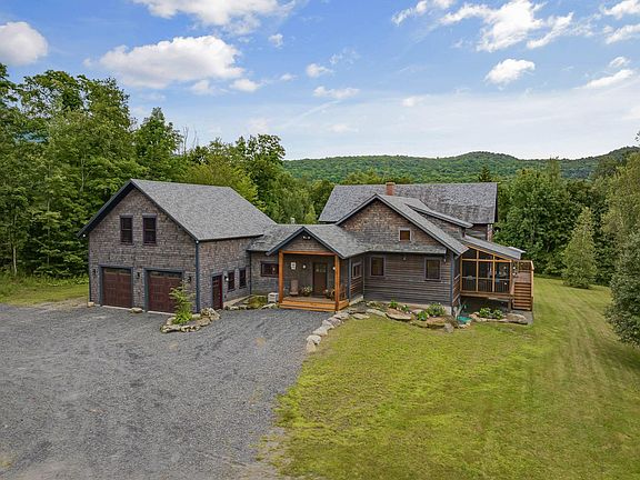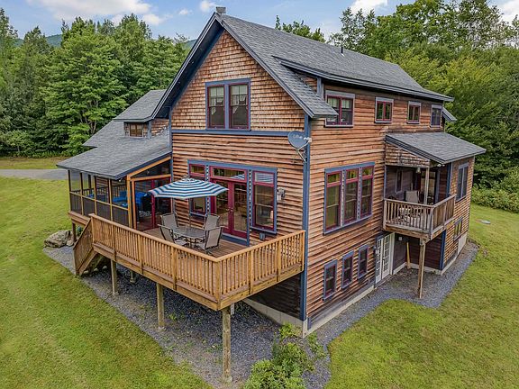 This thoughtfully designed home is situated on 18+ acres, less than a half-hour's drive to Jay Peak Resort. Privacy and easy living abound with a 2-bay garage, screened-in porch, large deck, and open meadows. Wander down through the woods to the Black Falls Brook, providing a picturesque retreat with swimming holes for cooling off on warm days. Upon entering the home, you'll be greeted by an array of impressive features. The open concept design, custom cherry cabinets, and cathedral ceiling create a perfect atmosphere for culinary creativity and gatherings. The primary suite beckons with its ensuite bath, complete with a soothing soaking tub, and a private balcony. Indulge in the epitome of comfort with radiant heat flooring throughout the home. The soapstone wood burning stove and wood-burning furnace serve as supplementary heating sources. A well-appointed guest room and bathroom conveniently located on the first floor can be made into an ensuite experience with a pocket door. Upstairs features two additional bedrooms, a bonus living/work space, and a 3/4 bath. The generously-sized basement has poured concrete floors, radiant heat, doors to the exterior, and plenty of storage space. The enticing feature of Starlink internet availability ensures a reliable and fast connection. Discover the allure of Montgomery, Vermont's "Covered Bridge Town," and make this exquisite property your own.