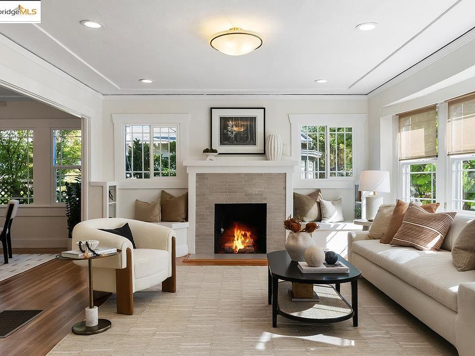 Set above and tucked behind lush, mature landscaping, 3056 California is a soulful Craftsman bursting with charm, flexibility, and modern upgrades. Thoughtfully expanded to include a detached guest cottage—ideal as a third bedroom, creative studio, or private WFH space—it’s a home that adapts to your lifestyle. Step through the custom wood front door into sunlit living and dining spaces where original wood detailing sets the tone. A glass-wrapped bonus sunroom adds a dash of whimsy—perfect as a reading nook, playroom, or bright, inspiring workspace. Just outside, a west-facing deck off the kitchen twinkles with string lights and spills into a long, gated driveway. A generous hardscape wraps around the home, leading to a flagstone patio and level lawn—an entertainer’s dream and a serene everyday escape. The kitchen is ready for the rhythm of modern life, while the beautifully updated hall bath brings a touch of elegance. Behind the scenes, recent seismic upgrades, a newer roof, owned solar, and central AC ensure comfort and peace of mind. Set on a cheerful, tree-lined street near BART, shops, parks, & more, this home offers the best of both worlds: classic architecture and everyday ease, wrapped in a setting and friendly neighborhood that simply feels good to come home to.