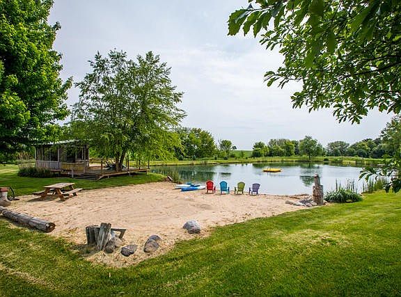 This incredible property on 18.76 acres feels like a serene retreat, enhanced by a gorgeous park-like setting overlooking a ~1.5 acre stocked pond with a sand beach, screened porch and deck. Featuring an airy, all-brick Ranch with 3-4 bedrooms and a finished walkout lower level, this home was designed with the view in mind and is perfect for entertaining! A 60x30 outbuilding has water, electric, and oversized doors - can easily accommodate several cars and all your toys. Back inside, you'll find maple hardwood floors, an open floor plan accented by a vaulted living room and kitchen with skylights, a gorgeous kitchen with new quartz counters, a fireplace with marble inlay, and a master bedroom suite with deck access. The lower level has heated floors, a family room with gas stove, an impressive mahogany bar, full bathroom, bedroom, office and stamped concrete patio leading to a 2nd screened porch! Horses Allowed. In-Law Potential. Click on 'virtual tour' to watch the awesome video tour!