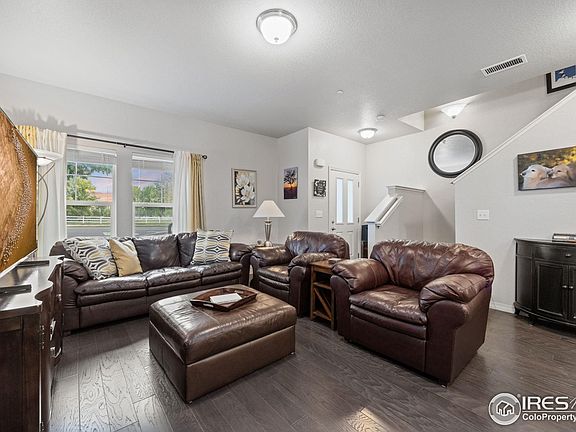 Welcome to The Park Townhomes at Fossil Ridge! This 3-bed, 3-bath home offers a bright, open floor plan on the main level with wood floors, a spacious living room, modern kitchen featuring granite countertops, stainless steel appliances, plus a convenient half bath and laundry/mud room. Step upstairs to the multi-use loft, creating privacy by separating the 2nd and 3rd bedrooms from the primary suite. The primary suite boasts a generous bedroom, dual-sink bathroom, and walk-in closet while two additional bedrooms share a 3/4 bath. Enjoy the ease of a 2-car attached garage and added crawlspace storage. Ideally located across from Twin Silo Park and Fossil Ridge High School, with easy access to shopping, dining, and recreation at Front Range Village.