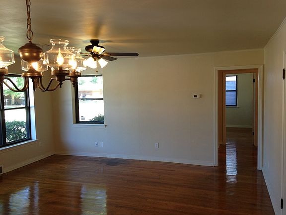 This is a very clean house with nice wood floors in dining, living, and bedrooms, and ceramic tiled floors in the kitchen and bath. Kitchen is large with updated cabinets and plenty of storage space. Gas cooktop, built-in electric range/microwave combo, dishwasher and disposal. Refrigerator is 3 years old. Recent new countertops and stainless steel backsplash. Washer/Dryer hookups are in the garage. Nice sized bedrooms with large closets with built-in drawers for extra storage. Large 1 car garage with a built in work bench and cabinets. Large fenced back yard. New water heater installed last month, and complete new heating and air equipment within the last 3 years. Easy access to the Lake Hefner trails through the back of the neighborhood. This house is available for move in on Sept. 1. A showing can be arranged with 24hrs notice. Deposit is $975 plus a $190 non refundable deposit for each pet.