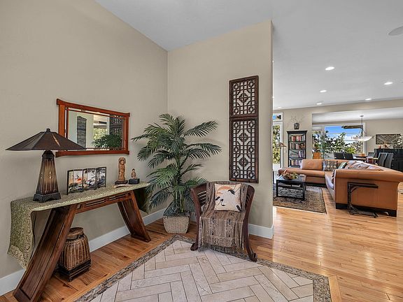 The home has Hardiplank fire-resistant siding, blown in insulation in 2X6 walls & ceilings for extra R-Value & sound dampening. Oversized 12-foot-wide 3-panel sliding glass door to front patio, 8-foot tall, extra wide doors with no steps. In addition there is a 3 car garage with oversized 18-foot-wide door for double bay. All new landcaping and HOA fire resistance completed.