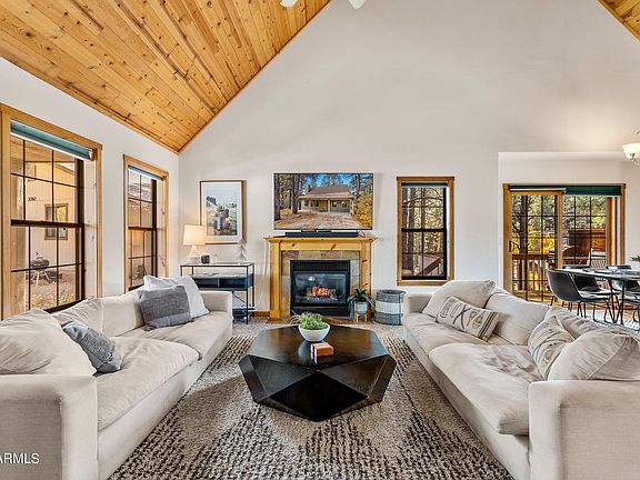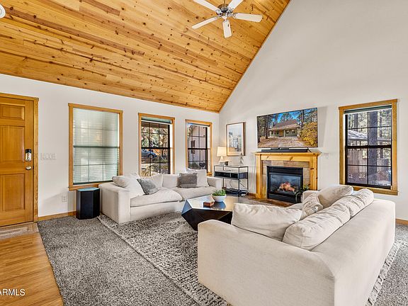 Welcome home to your dream cabin in Flagstaff! This a-frame home has been so special for the owners as it is their family cabin, but short term rent it when not using it. Wood floors and vaulted wood ceilings make this the perfect getaway cabin. Two bedrooms are downstairs with the open floor plan and the primary bedroom suite is privately tucked away upstairs. Enjoy this extremely loved cabin just minutes away from the main strip of town. Keep it for your own family or purchase as a turn-key AirBnb! This charming cabin truly has it all.