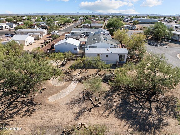 ''Escape'' from it all! This home is strategically placed on a spacious QUARTER ACRE in the Escapees North Ranch Community. The lot boasts MATURE MESQUITE, Palo Verde and Palm trees, water spigots throughout the property, meandering flagstone paths, spa pad, outdoor fireplace, and beautiful flagstone steps leading up to the home are the foundation to the oasis in the desert. RV POWER. Add some elbow grease and personal touches and your Winter Get-a-way awaits! INVESTESTORS, don't hesitate on this one! This community is a great location to bound off to State and BLM Land, roping arenas, short trip to Prescott and Wickenburg for a day of shopping. Come for visits or stay year-round, to enjoy your community with pickleball courts, a clubhouse, mountain views and ARIZONA SUNSET