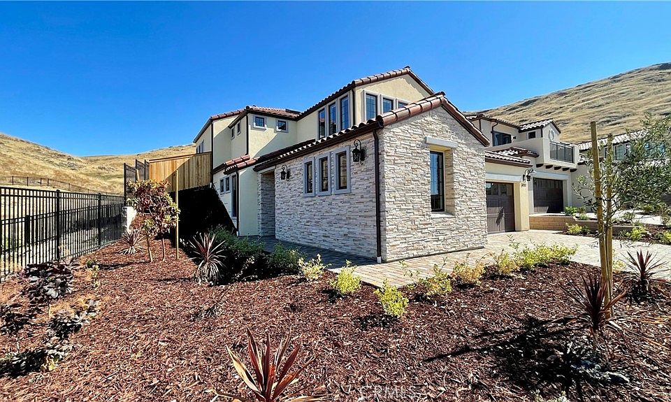 This newly built Cortese model 3 bedroom, 2.5 bathroom home in the Tuscan influenced community of Toscano is uniquely situated next to a natural preserve and backing up to the South Hills open space. Throughout the home you will find 9' ceilings, hand textured walls, and elegant finishes such as Mannington 7" luxury vinyl plank flooring throughout the main living areas. The kitchen with granite countertops and stainless-steel appliances (including refrigerator) is open to the family room with a cozy gas fireplace. The primary bedroom offers a large walk-in closet and luxury tiled bathroom with curbless shower and seamless glass door. There is a laundry room with washer and dryer included and a fully finished interior 2-car garage and central air conditioning. The back yard offers a large pavered patio complete with fire pit and beautiful views of the protected open space on the hillside behind. Enjoy the South Hills hiking paths just outisde your door in this master-planned new community with old world charm.