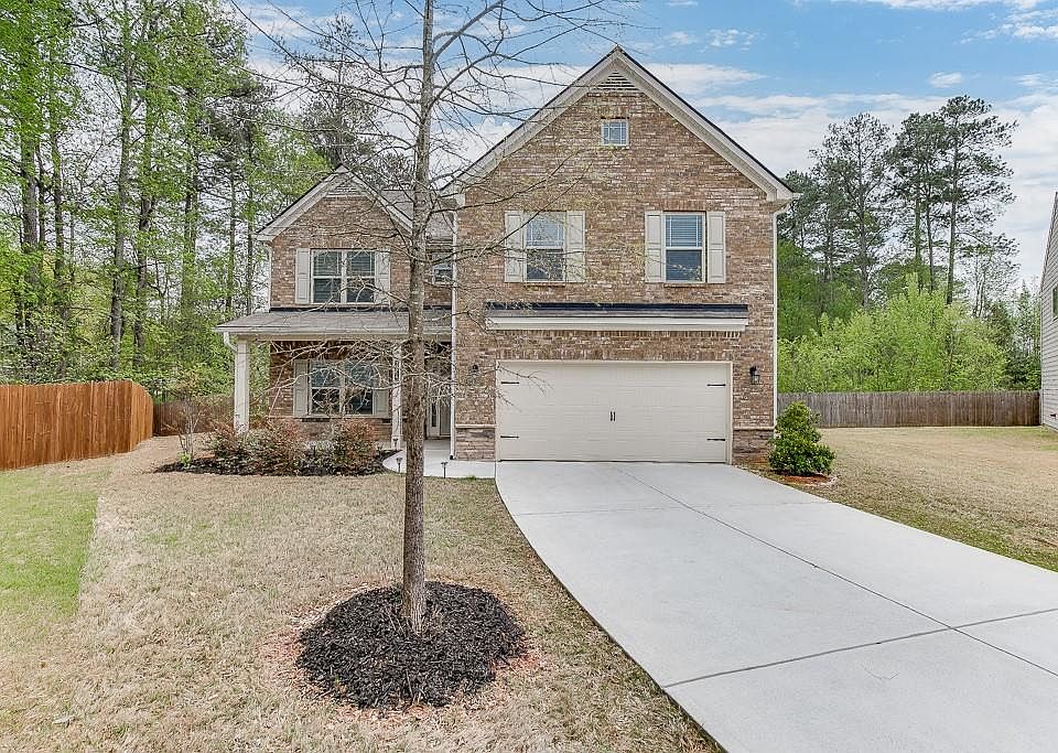 BACK ON MARKET DUE TO NO FAULT OF THE SELLER. Unique opportunity in Marietta. 4BR/2.5BA home in Powder Springs Village on a quiet cul-de-sac lot. Covered front porch welcomes you in to the beautiful entry way with a formal Dining Room just off the foyer. Continue in to the home to the open eat-in Kitchen with dark wood cabinetry, granite countertops, and stainless steel appliances. The Family Room has an arched entry and beautiful marble fireplace. Travel upstairs to the four spacious bedrooms. Master Suite offers trey ceiling and a Master Bath with soaker tub, dual vanities, separate shower and a large Master closet. Full hall bath and laundry room complete the upstairs. Outside, the extended patio overlooks the private fenced backyard. ** FIVE YEARS REMAINING ON STRUCTURAL WARRANTY FROM BUILDER**