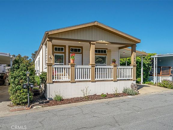 Beautifully maintained 2018 built Manufactured Home in the desirable 55+ Chumash Village, where you own the land (no space rent) with only a $237/mo HOA. This move-in ready home offers a welcoming front porch and well appointed living space with luxury vinyl plank flooring, neutral paint colors, crown moulding and an open floorplan. Kitchen features include Corian counters, breakfast bar seating, shaker style cabinets and stainless steel appliances. The primary bedroom is spacious with an en-suite bathroom offering a walk in closet, dual sink vanity and shower. Two smaller bedrooms have been combined to create the owner's art studio and the bedrooms could easily be separated again based on buyer preference. A hall bath with tub and shower is adjacent to the laundry room which exits to a relaxing concrete patio for morning coffee or entertaining. Other highlights include the home's clerestory windows letting in lots of natural light, a storage shed, dual pane windows, ceiling fans throughout and more. Chumash Village is a Premier Modular Home Park with 235 homes and the HOA dues include multiple amenities like 2 pools, billiard room, exercise area, clubhouse, laundry facilities, trash service and RV parking. Centrally located in close proximity to hiking trails, downtown SLO, freeway access and commercial services.