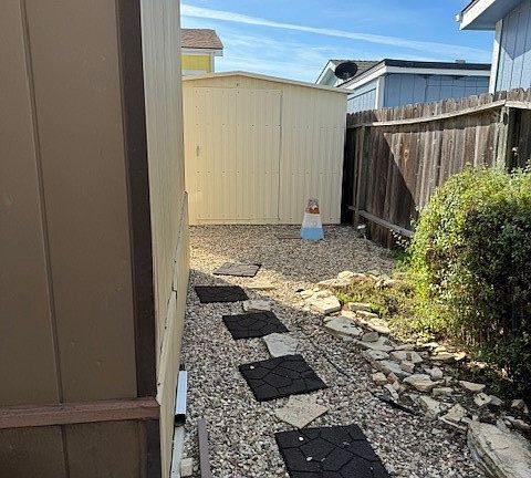 Affordable and livable; or bring on a new unit to your own lot, owned outright by you! No space rent. Very clean and well maintained mobile. The bathroom and back bedroom have been drywalled (ceilings and walls). Aluminum roof installed in 2003 with 2" foam layer; new furnace in 2006; new water heater in 2017. 2 storage sheds. The coach was releveled in 2022. This is a great value for the only park in San Luis Obispo where you own the land. HOA fee is $237 per month. There are two pools, spas, and a large community house.