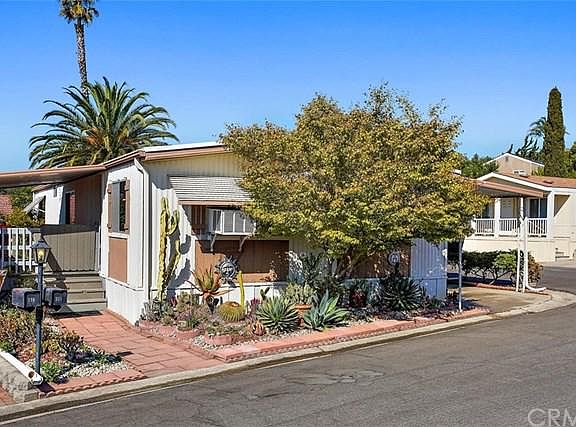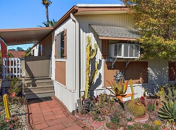 Affordable living in wonderful SLO 55+ community. Enjoy the heated pool and other common facilities in this manufactred mobile home where you own the land. Private low maintaince yard with 40 year old established draught resistant landscaping, patio, area for a garden, and even a view of the hills. This cornor lot backs up to the pool area so only one home is next to you. The gated redwood front deck provides a place to relax or dine. Double parking space. This mobile home can not be compared to the average mobile home because of all the unique upgrades and location. A few of the over $60,000 in upgrades include new roof, new furance, new high end appliances, flooring, paint, 3/4 inch sub flooring, new water heater, newwe cabinets, counter top, sink, faucet, and much more.