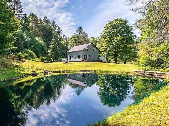 Unique Chester property on 10.08+/- acres with home business potential! This 3 bedroom, 1.5 bath Contemporary has lovely grounds that feature a pond, landscaped rock gardens, a vegetable garden and ample open space for more gardening endeavors. The detached 3-bay garage offers multiple large spaces and oversized doors. Whether you are an artist, contractor, carpenter or mechanic, the high ceilings and huge amount of work space will be appreciated. Set back from the road with plenty of parking area, there is room to add more outbuildings for business needs. The efficient house features a cozy living room, first floor bedroom, full bath and kitchen/dining that opens to the back deck overlooking the private pond. The second floor has a large common area adjoined by two bedrooms and a half bath with laundry. The whole house generator and Fiber Optic internet service will keep your systems and business running during power outages. Commutable to the Upper Valley, convenient to Springfield, skiing, shopping, Chester Village and all the area has to offer. Motivated Seller!