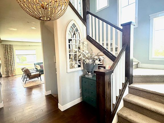 This one-of-a-kind home offers custom features and thoughtful design throughout. The main level showcases hardwood floors, a spacious laundry room with built-ins, and a butler’s pantry with a convection oven and ceiling-height glass doors. The living room includes custom built-ins, a beautiful mantel, and a designer range hood in the kitchen. Downstairs, enjoy a cozy theater area and a built-in snack bar. Upstairs you will find a hidden room tucked behind the master closet—perfect for storage or a fun hideaway. Outside, the backyard is made for entertaining with a large paver patio, built-in gas fire pit, and cedar pergola. You’ll also find cedar garden boxes, raspberry and strawberry bushes, a built-in trampoline, and a custom play area for kids or grandkids. Extra features include RV/boat parking, a lifetime storage shed, a new dishwasher, and so much more!