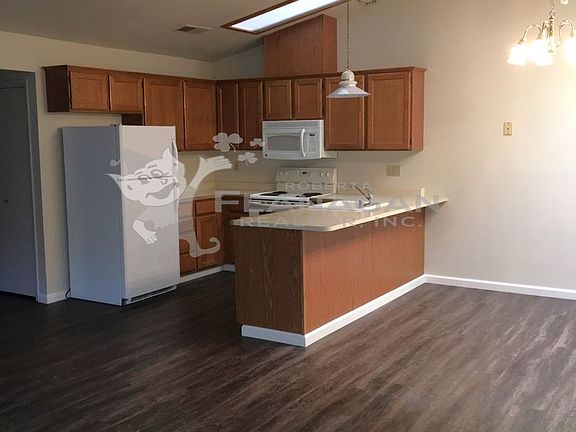This spacious two bed two bath duplex is an open floor plan to the living room, kitchen and dining area. The front of the home has a covered porch the back yard is fenced in and accessible from either bedroom or living room. Attached single car garage. Owner pays: WS&G