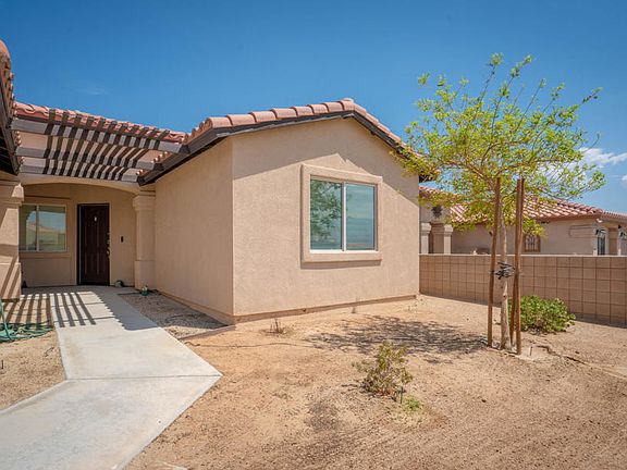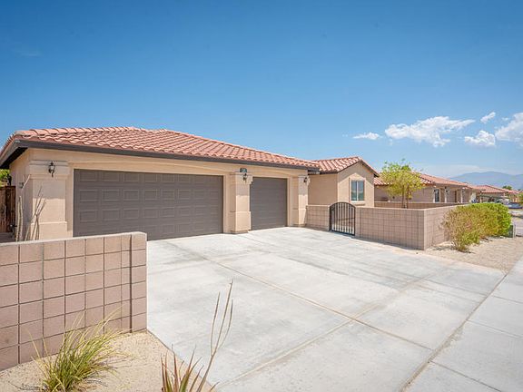 Beautiful home! Located at the Ridge View development in Thousand Palms. Property counts with 5 Spacious Bedrooms, 3 full baths and a 3 car garage. Great open and updated kitchen with stainless steel appliances and granite counter tops. The newer refrigerator, washer and dryer are included in sale. It has a very convenient separation of bedrooms. Primary bedroom has a walk-in closet. A good size laundry room. Window shutters throughout the house! Nice cover patio and a backyard large enough to put a splashy pool & spa. Subject home is within the lower cost power company of IID. Courtyard at front with a very attractive desert landscaping. Within walking distance to Della S Lindley Elementary School, the lovely community park and Community Center. Thousand Palms is centrally located, meaning easy access to I-10 Fwy, Shopping Center, Markets, Casino, Schools, Dinnings and the Acrisure Arena. Spectacular unobstructed panoramic view to mountains to the west side of the valley. Don't miss this opportunity!