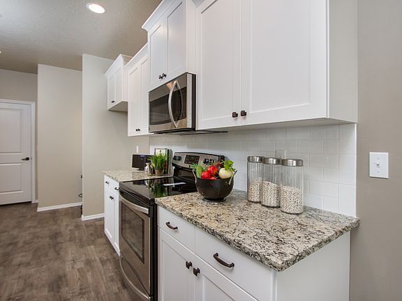 Flagstaff ; Tahoe Homes. Completion date is 05/23/17. This home backs to open space with a north facing backyard. Next to Siena Elementary school. The kitchen has custom cabinetry w/full tiled backsplash. Slab stone island and built-in work station in kitchen w/desk. Awesome walk-in pantry. Upstairs has a large master suite w/slab stone dual vanity & WIC + built-in desk at Loft. Pics & virtual tour are similar. NO MOWING!!