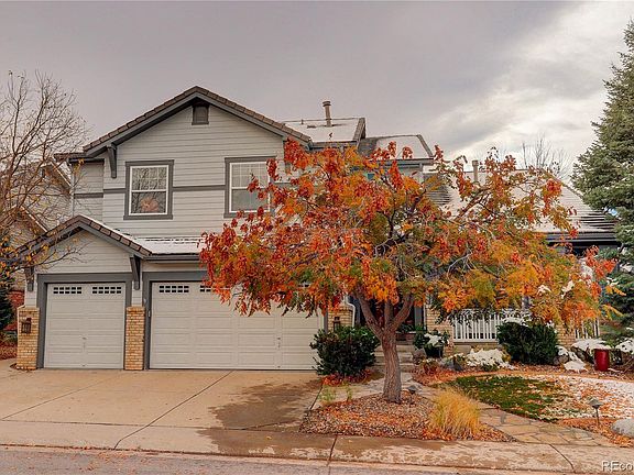 Simply elegant, this beautiful home is located in Highlands Ranch Golf Club. You’ll appreciate the charm and quality of the home with its wrap around front porch, spacious entry, hardwood floors, formal living & dining rooms. The main floor den/study has built in bookcases and gas fireplace. Enjoy the gourmet kitchen with 42-inch custom Cherry cabinets, granite and gas cooktop. Charming breakfast nook opens to a spacious family room with built -in shelves and gas fireplace. Upstairs, the spacious primary bedroom has coved ceilings, 2 walk-in closets & five-piece master bathroom. There are also three generously sized secondary bedrooms, two share a Jack & Jill bathroom & one with an ensuite 3/4 bathroom. The basement has a large, finished open area, great for exercise equipment, crafts and games. Enjoy the expansive covered back patio and professionally finished yard with a beautiful garden area, perfect for relaxing or entertaining. This meticulously maintained home is steps from the Highline Canal Trail linking to miles of Denver Metro trails; within a mile of Ben Franklin Charter School, shopping dining and Children’s and UC Health HR hospitals. Highlands Ranch residents have access to 4 recreation centers that offer pools, tennis, pickle ball and a full range of youth and adult fitness and sport activities. Douglas County Schools. Easy access to C470, Santa Fe and the Mineral Light Rail Station.