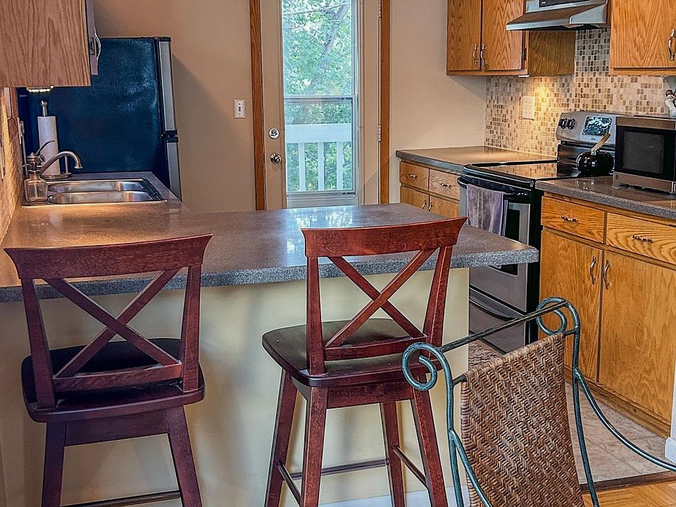 kitchen has a balcony with peaceful, tree-lined views – ideal for enjoying your morning coffee. Expansive