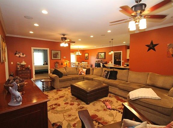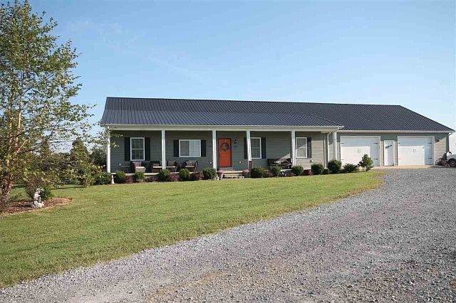 Serene country living at it's best! This secluded 4 bedroom home has an open floor plan with a spacious kitchen, dining area and large living room! With a split bedroom plan, you will find hardwood floors, Stainless Appliances and beautiful kitchen cabinets! Outside there are 9 acres with a fully stocked pond to relax and pasture land for your horses. There is a 30 x 40 Detached Garage / Shop with Electric and a 12' lientu.