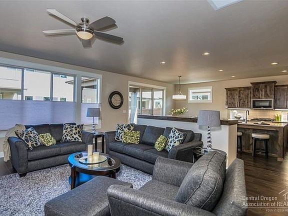 Steps from the Deschutes River Trail in River's Edge. Gated community. This two-level 2765 SF home includes lots of elbow room. Spacious Great Room with den on main. 4 bedrooms upstairs including huge flex/bonus room. Custom quality finishes throughout, including coffered ceiling, quartz counter tops, SS appliances, engineered hardwoods, WIC, double-doors off Master and much more. 5 minute walk to the Deschutes River. Minutes from downtown Bend!