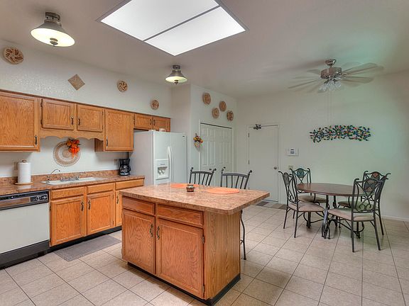 Super home in Desert Hills 4,2 bedrm-split, 2 bath, 2 car garage(over size, storage cabs and epoxy floor), super large kitchen w/a huge island, open living room and Beehive fireplace, den and a sitting room. Good size master bedroom, fans,loads of skylights, a lovely entry courtyard and a super private backyard...both are easy care (no drip system)! Back opens to a large common area. Wood front door, paneled inside doors, sunscreens just lots of great finishes. This home is Clean and Maintained. NEW HEATING/COOLING UNIT 2016!!!