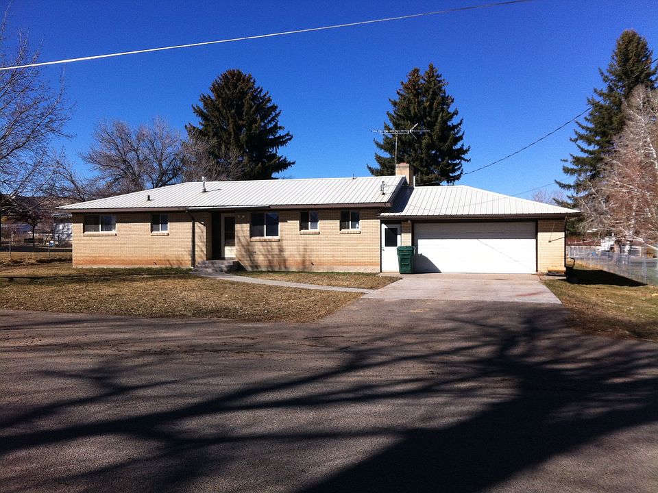 1962 brick home 3 bedroom 1.5 bath 1300 sq ft with oak hard wood floors. Radiator boiler system throughout the house that was updated in 2008, wood stove insert. Runs off natural gas and city sewer. Connected to a large two car garage is a food storage room and a tool room. Out back is a metal out building on a cement slab. Full landscaped with fruit and shade trees. the lawn and garden area has an in ground sprinkling system that runs off a well. Great quiet neighborhood!