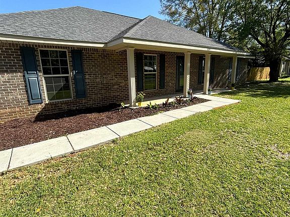 Gold Fortified hard to find newer construction brick home in the heart of downtown Loxley. This is a one level 3 Bedroom / 3 Bathroom split floor plan with an easy living open concept living area. The kitchen has granite countertops, stainless steel appliances, beautiful dark wood cabinets, a large breakfast bar, plenty of cabinet space and a utility room/pantry conveniently located just behind the shared wall. The primary bedroom suite has a large bathroom with a granite countertop vanity, separate water closet, shower/tub combo, and two walk in closets. The living room has a vaulted ceiling, vinyl plank floors, and opens into the kitchen and dining area. All bedrooms have recently professionally cleaned carpets. Bedroom 2 has it's own en-suite bathroom. The Hallway bath also has a shower/tub combo. This home sits on a large half-acre fenced in lot with a very nice custom built workshop building. The workshop is built on a slab, has insulation, two covered lean-tos, and has electricity running from the house. The location has easy access to I-10 and is a short drive to the beautiful beaches of Gulf Shores and Orange Beach. If you are looking for a new construction home in the central Baldwin Area this one is a Must See!