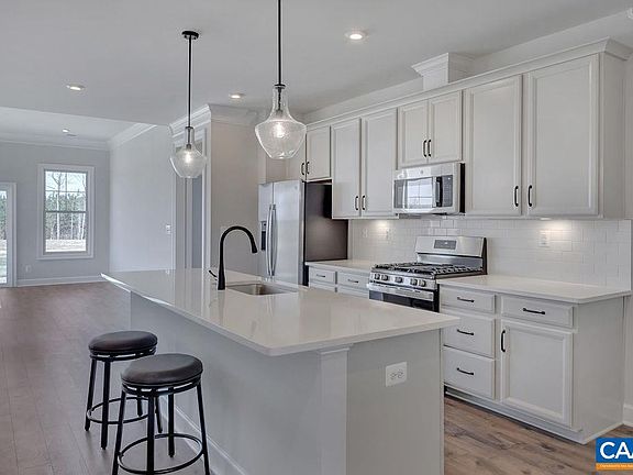 This Beck townhome is one of our final end-unit homes at Glenbrook at Parkside. Morning light will spill into the living area & kitchen of this open-concept, main-level living floorplan. This beautiful home is loaded with HVAC zone control, oak stairs with rails and a 55” modern electric fireplace. The open-concept kitchen features white cabinets, a large island, white Quartz countertops, a light grey subway tile backsplash, and upgraded GE Profile convection oven & microwave with a French door fridge. The main level laundry and pantry are steps from your zero-entry 2-car garage. Two distinct living spaces and three bedrooms offer plenty of room to spread out yourself or host for the Holidays. This low-maintenance, lock & leave, warranty-backed home is designed to make life easy so you can spend more time living and less time on maintenance and chores. Lawn-mowing is covered by the HOA. We’re down to the final homes at Glenbrook Parkside – a unique, one-level-living, two-car garage townhome neighborhood - built on two cul-de-sacs with no through traffic. Walking distance to Downtown Crozet & steps from the amenities and mountain views of beautiful Crozet Park, this location can't be beat! Similar Photos. Late Spring 2023 Delivery.