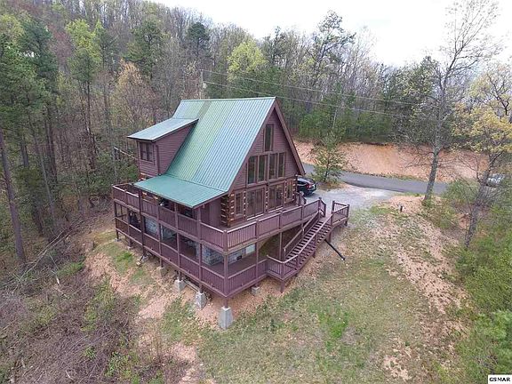 1BR/2BA plus a huge loft in this beautiful log cabin on the quiet side of Wears Valley. Easy access with paved roads. Home has 2 wrap around decks, pool table , hot tub, updated new HVAC, range, stove, washer, guttering, painted exterior for lifetime, gorgeous new leather furniture, large kitchen with island & private, totally secluded with an extra lot that is included but with amazing views. All you see around you are beautiful views of the Great Smoky Mountain area. Great room, large full kitchen with island, master bedroom with king size bed, two full baths one with whirlpool tub. All hardwood floors except tile in kitchen and vinyl in downstairs bath. NO HOA!! Currently rented via VRBO with an average gross rental income of $35,000.00