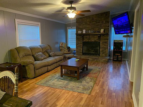 Spacious home that features 3BR/2BA, living room, den with fireplace, kitchen island. Enjoy your time on the front or the back covered decks. Large fenced back yard with storage building. Recently painted. All kitchen appliances remain.