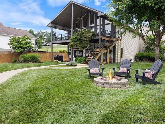Welcome to this beautifully maintained 4-bedroom, 3-bathroom lakefront home in the highly sought-after Gladstone Cove. Enjoy peaceful lake living with cove protection, a gentle lot, and an easy walk to the water's edge where your private dock with swim platform awaits. Step inside to find soaring ceilings lined with native Missouri wood, a cozy fireplace, and an inviting open floor plan. The kitchen and great room were tastefully remodeled in 2020, and there have been many updates throughout the entire home, blending modern comfort with rustic charm—perfect for entertaining or relaxing with family. The custom bunk room on the lower level is a kid's dream. Outside, the home boasts beautiful landscaping, a metal roof, and a low-maintenance exterior, allowing you to spend more time enjoying the lake and less on upkeep. With no HOA restrictions and being rental friendly, this property offers excellent income potential or the perfect full-time residence. Don't miss your chance to own a slice of lakefront paradise in one of the Lake's most desirable coves!