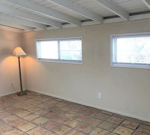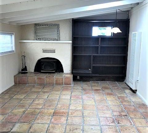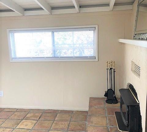 Quiet setting, larger back unit with good size rooms, all tile flooring. Kitchen offers both stove/refrig, fireplace in living room, unit has ceiling fan in bedroom and mirrored closet bedroom doors. There are two skylights making the living room light and bright! Shared patio courtyard and 1 off street parking. One Year Lease, NO Smoking and NO Pets Please