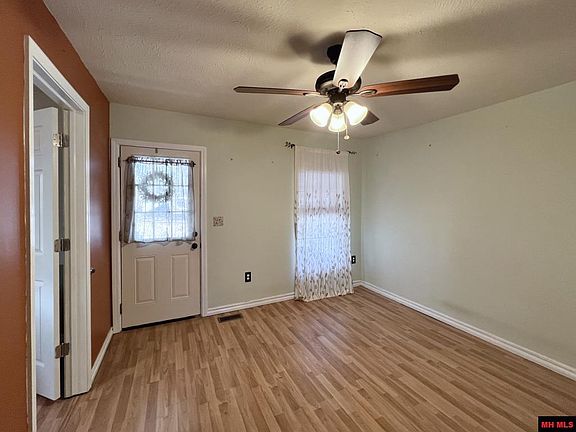 Check out this cute little house in Harrison! 3 bedroom/2 bath sitting on 0.25 acre m/l in the city of Harrison. Nicely updated with tile and laminate floors, granite counters and open floor plan. Nice covered front porch, fenced yard, covered back porch – great for a hot tub; two carports, fenced in yard with fruit trees, metal roof. Several prefab buildings – the one behind the house was used as a gym; the other two buildings are finished with metal roof, flooring, insulation, drywall, paint, electrical, fridge, mini split units for heating and cooling windows, and incinerating toilet. Both were used as guest bedrooms. Just a block or so to Hwy 62/412 in a quiet neighborhood.
