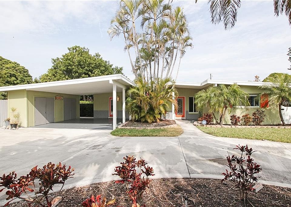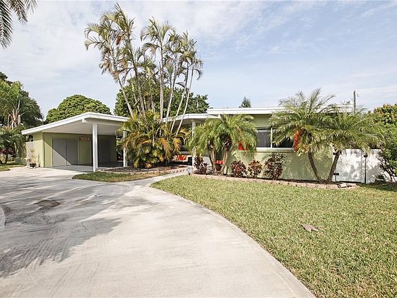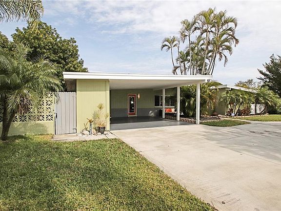 This is the one youve been waiting for! An impeccably maintained 3 bedroom, 2 bath mid-century modern pool home located in desirable Belle Vista. This home offers Florida living at its finest a large lot with tropical landscaping, pool and spa, huge fenced-in yard, private side patio, additional outside storage, and 2 car carport, all located just a short stroll from the sandy beaches of St. Pete Beach. Step inside and youll be wowed by how spacious and airy this home feels, thanks to its open floor plan, vaulted ceilings, and window-filled rooms. The kitchen has been updated with wood cabinetry, stainless steel appliances, granite countertops, and a large island perfect for dining on barstools. All three bedrooms are spacious in size and arranged in a split-plan, with the master opening to the beautiful backyard and back patio. Both bathrooms are clean and bright and feature skylights and lots of cabinetry for added storage. You will fall in love with wonderful Belle Vista with its deeded beach access, playground and fishing pier, kayak and paddleboard launch, all within a short walk to the shopping and restaurants of St. Pete Beach and just a 15-minute drive to downtown St. Pete. This home is not to be missed!!