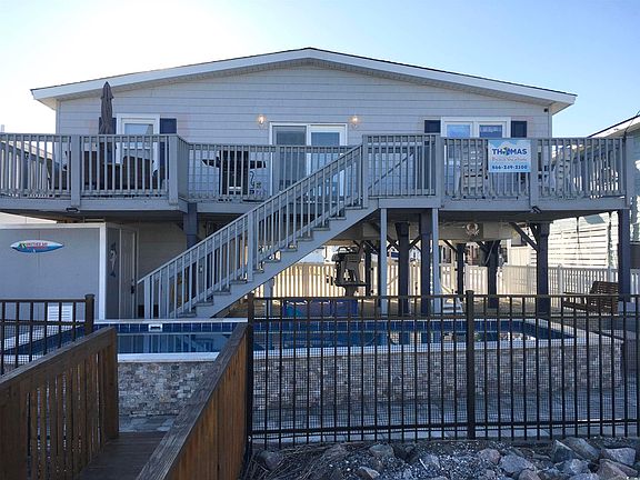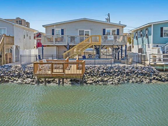 This house is aptly named "One Smile at a Time", bringing back all the feelings of the traditional channel home with the many updates everyone wants. Original hardwood floors and old style paneling provide charm and character that is so prevalent in the Cherry Grove Channel section. Both bathrooms have been updated with tile, vanities, fixtures and LVP flooring. Large bedrooms provide lots of sleeping space for family and friends. Full size kitchen with newer stainless steel appliances. Plenty of options both inside and outside for dining. Outdoor shower and laundry room on ground level, with appliances, hot water heater and HVAC raised off the ground, protecting them from storms. New plumbing lines, new electrical, exterior light fixtures, front door and all interior solid doors have been installed. The list goes on and on... Gorgeous new raised swimming pool (as of 1/2023) that's shaded in the afternoon for all to enjoy. Large dock over the channel to enjoy the sunset, fish, swim, kayak or dock your boat. All this, just a short block and a half from the ocean. Designated beach access at the end of the road. Cherry Grove is always a family favorite! The beach, dining, entertainment, golf and shopping are so close with something for all to enjoy! All the work has been completed, the only thing missing is you! Take a look at "One Smile at a Time" and fall in love!